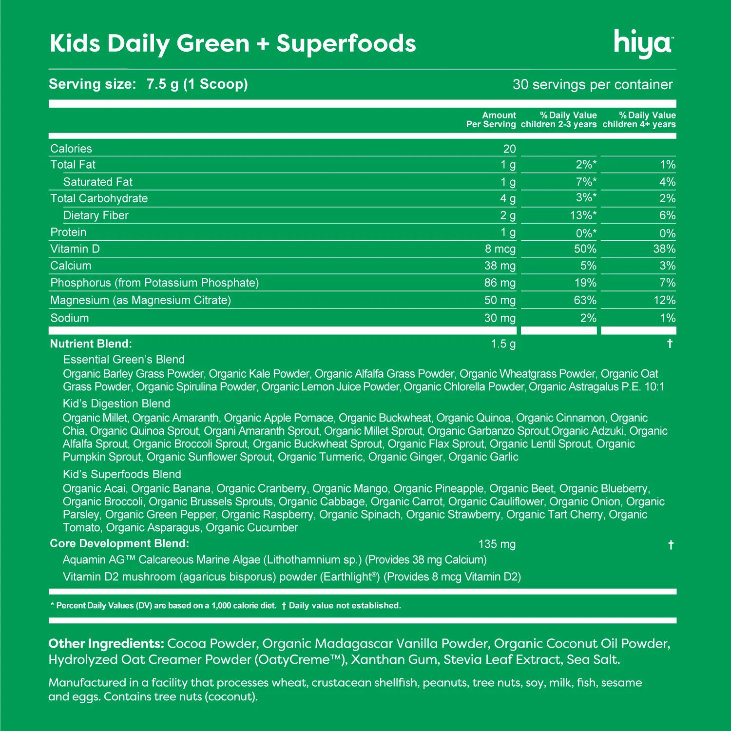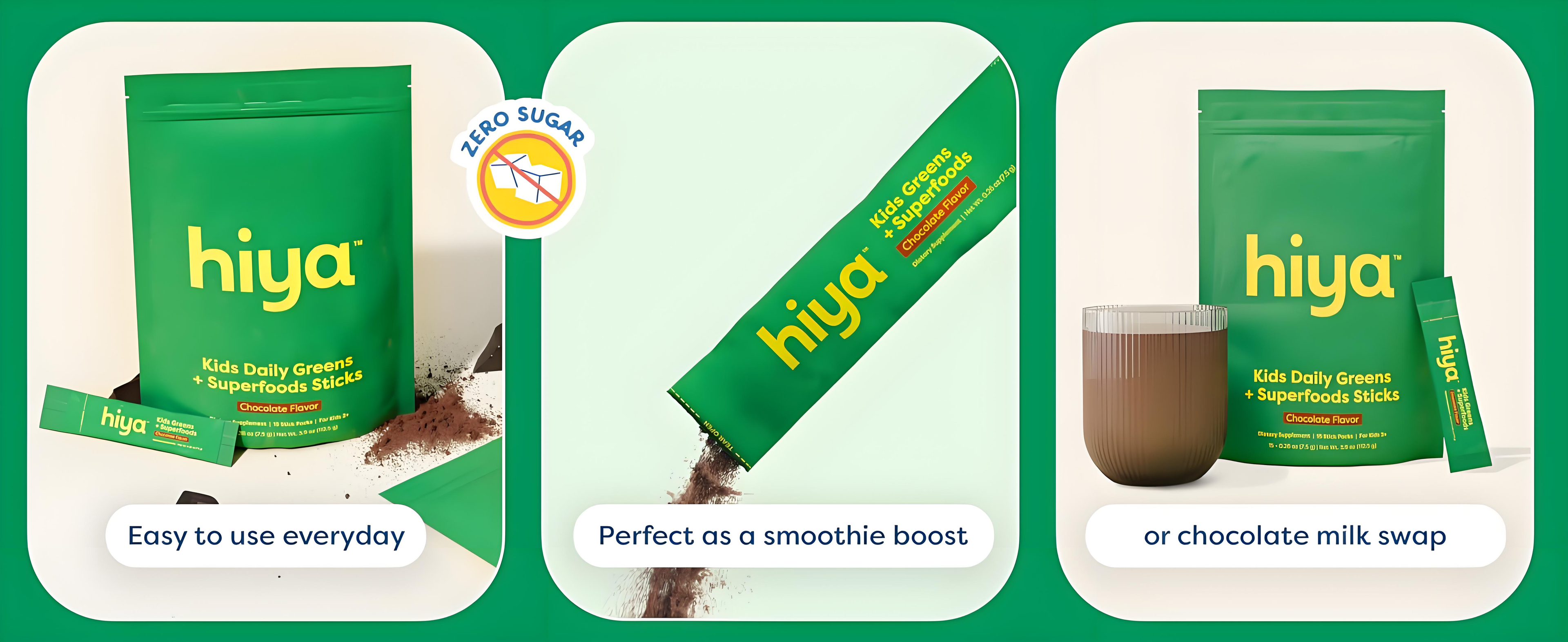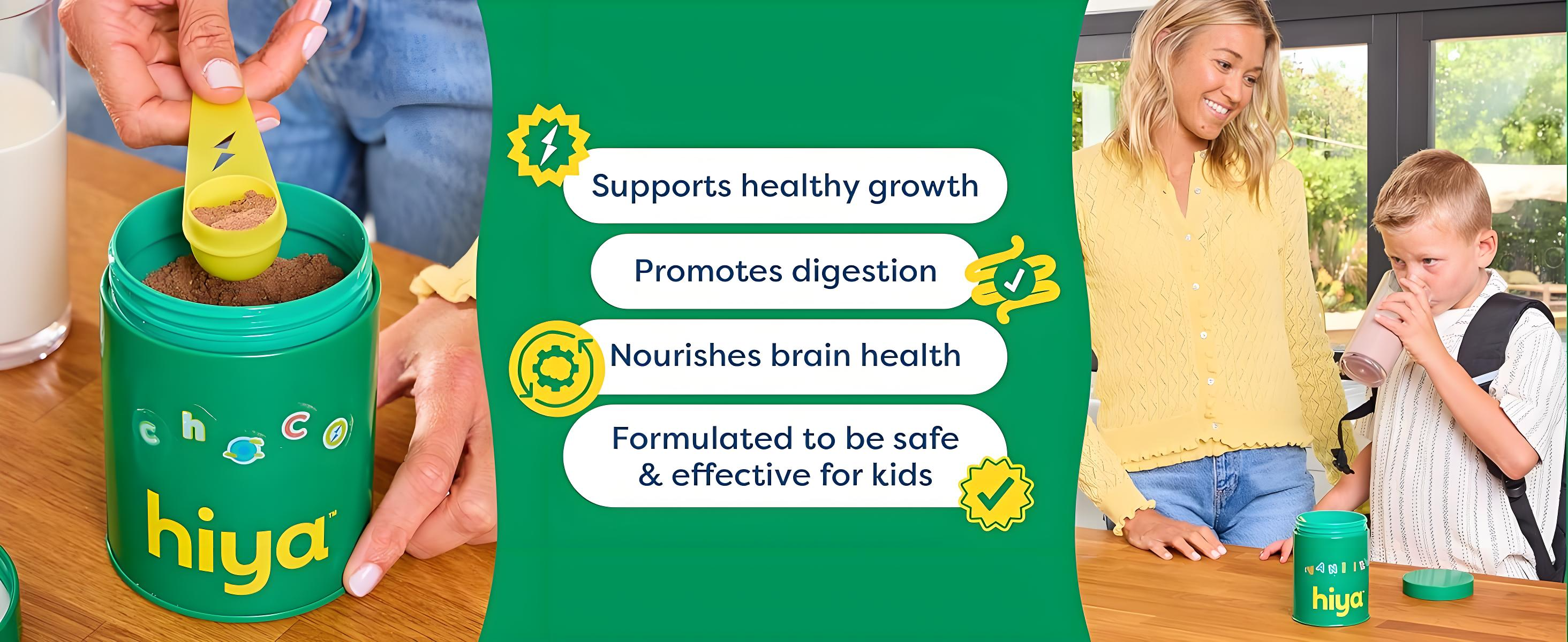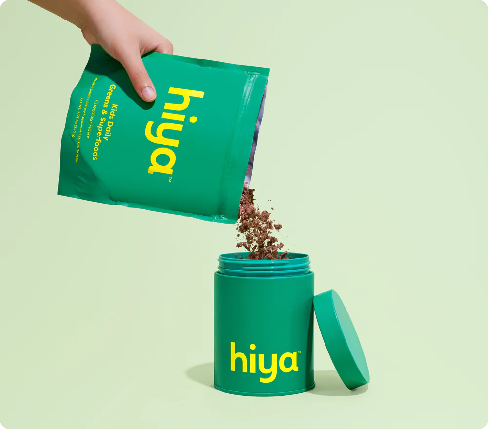 Most greens powders are made for adults, often containing unsuitable herbal extracts and nutrient levels not ideal for kids, plus an "adult" taste. Hiya’s Daily Greens + Superfoods is designed specifically for kids with a taste they love.