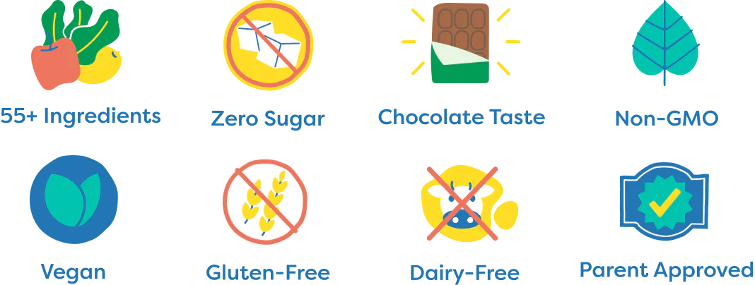 Let’s face it – most kids don’t love greens. So we ground up 55 whole food ingredients, including spinach, broccoli, and more, then turned it into a tasty comprehensive powder without the typical taste of greens. So your kids can enjoy essential nutrients in a daily drink – without the stress of meal-time battles.